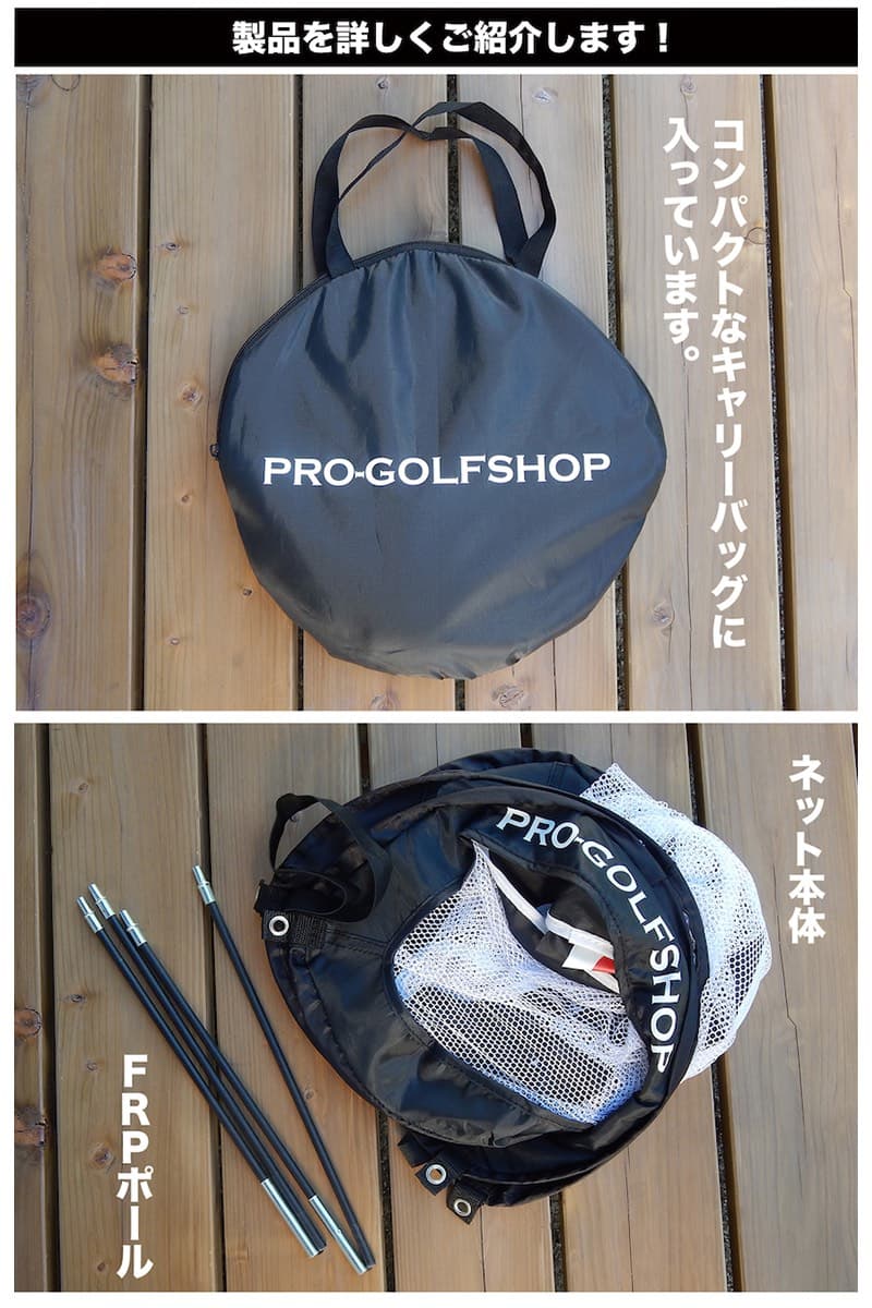 ■ 製品のご説明 ●基本セット内容 ネット本体 幅67cmx高さ65cmx奥行70cm (ネット内のワイヤーフレーム張力が働くため最大部の幅は70cm以上になります) FRPポール2本、キャリーバッグ付き ●組み立てについて キャリーバッグから製品を取り出すと、内臓ワイヤーフレームの張力で自然に開きます。