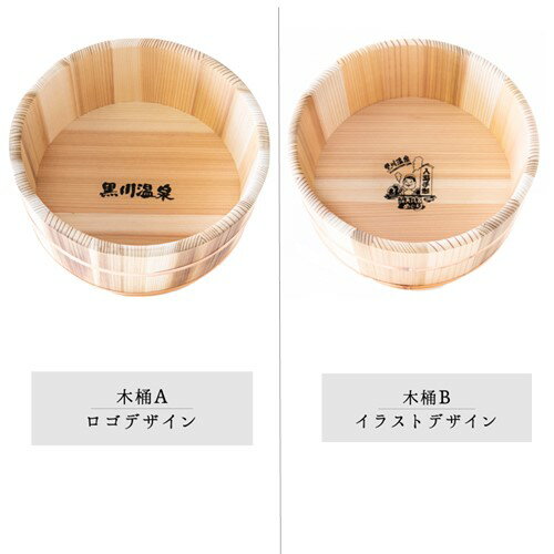 《製品情報》 ・サイズ 86cm × 32cm ●黒川温泉 木桶(1個) 黒川温泉のオリジナルマークが施された木桶です。